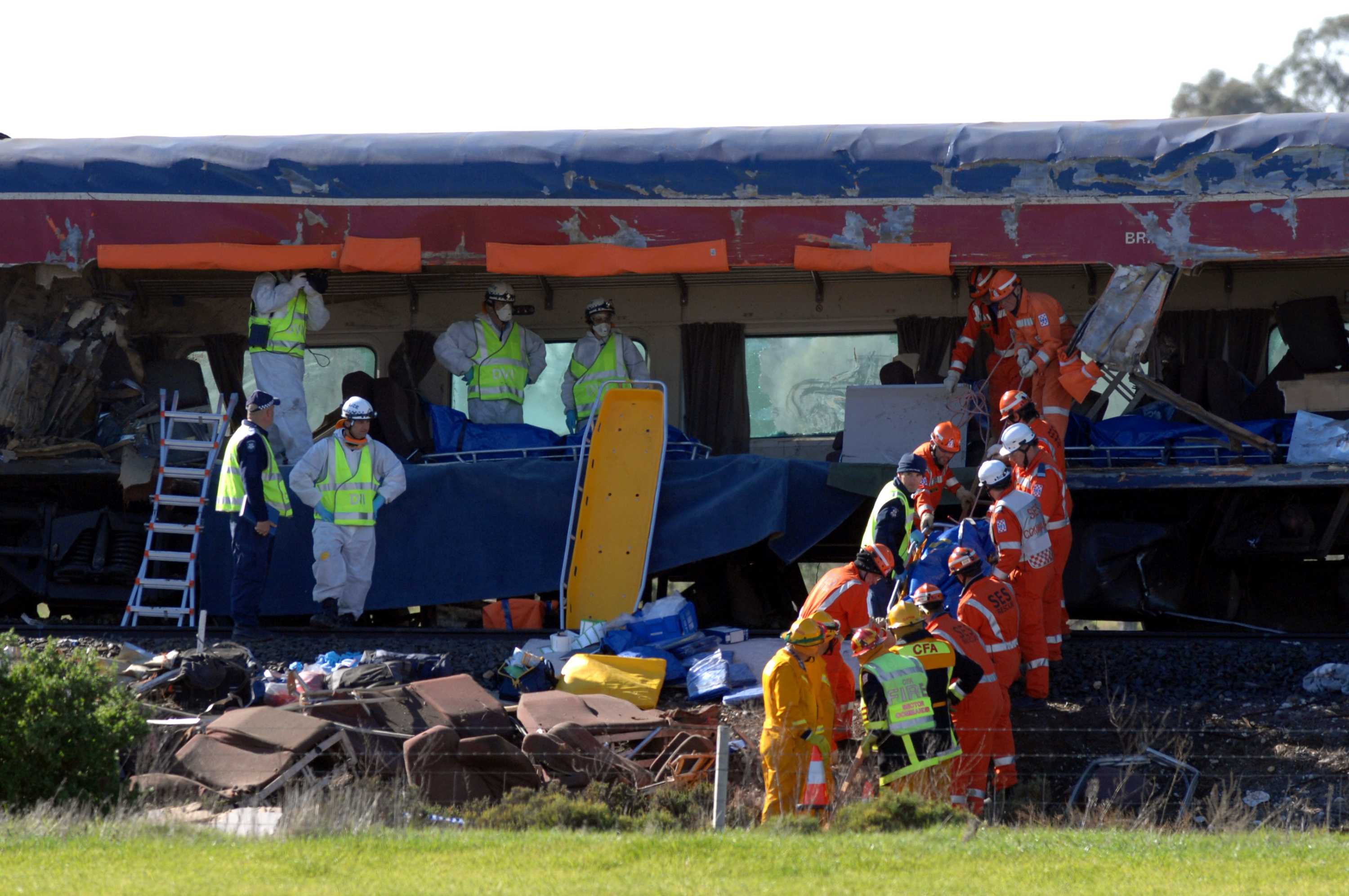 The Kerang train accident occurred on 5 June 2007 at about 13:40 AEST in the Australian state of Victoria, approximately 6 kilometres (3.7 mi) north of the town of Kerang in the state's northwest, and 257 kilometres (160 mi) north-northwest of the city of Melbourne.. Victoria Police confirmed that 11 people were killed and 23 injured in the crash, making this to date the deadliest Australian.